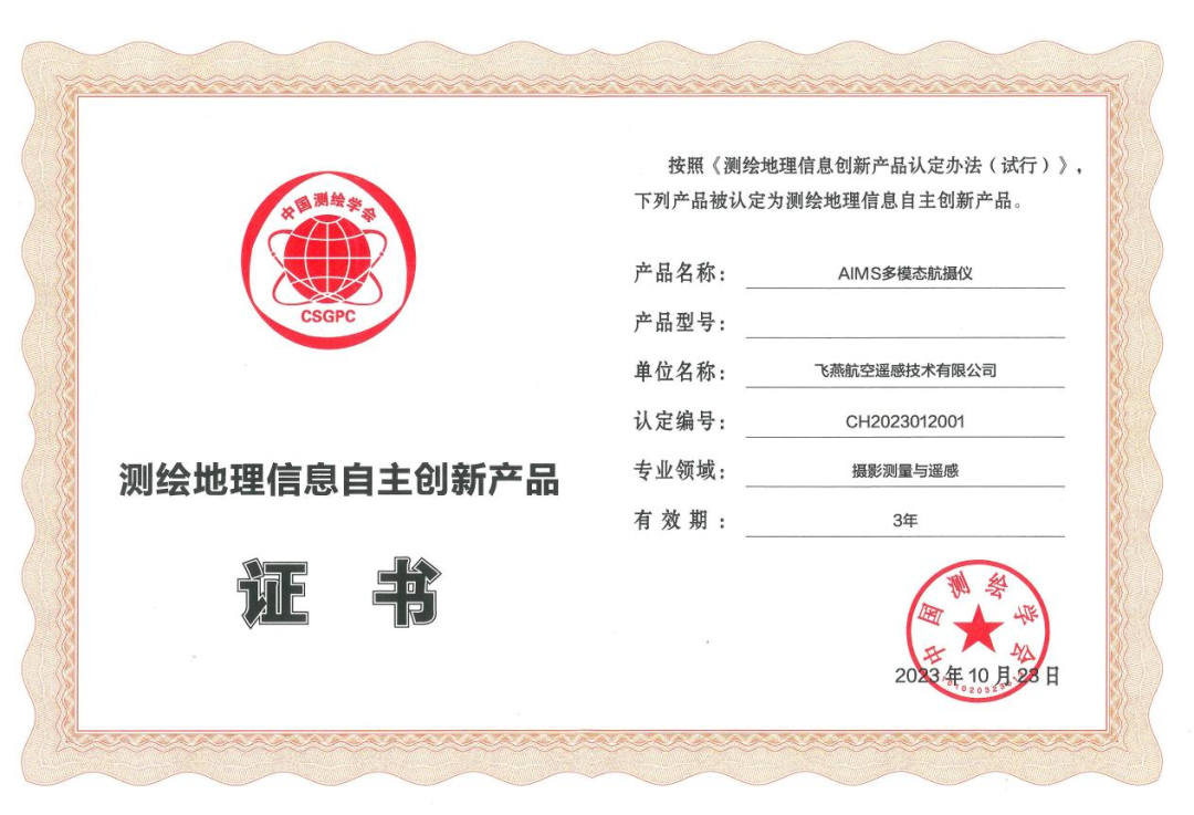憑借《AIMS多模態(tài)航攝儀的研制與規(guī)模化應用關鍵技術》項目斬獲2023地理信息科技進步獎一等獎。