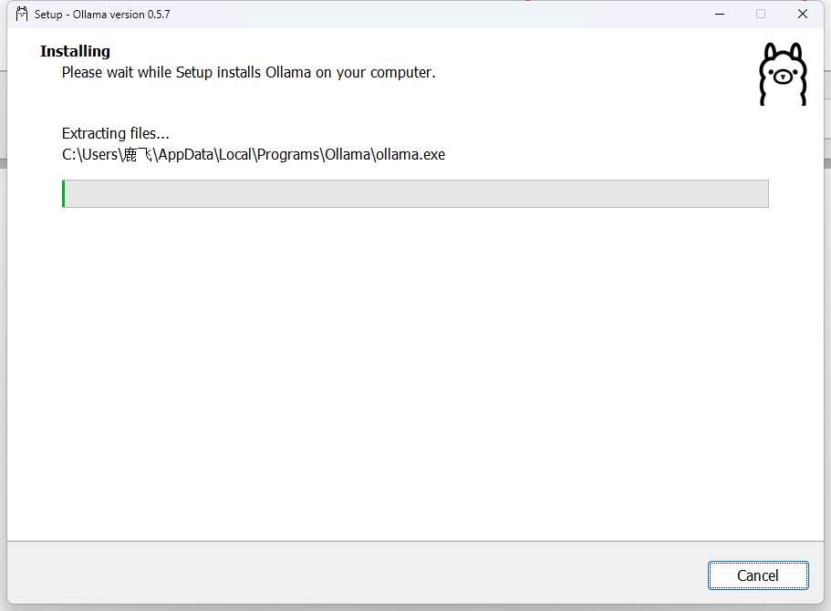 右下腳出現(xiàn)羊駝的圖標(biāo)代表著ollama已經(jīng)安裝完成。
