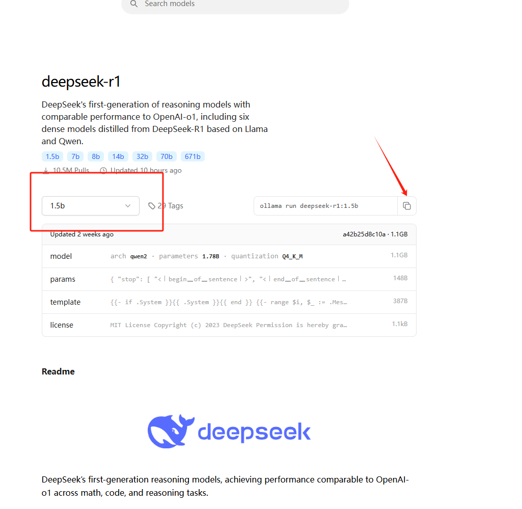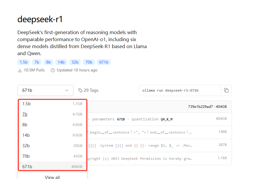 如果只是想玩玩的話1.5B也是可以的,訪問ollama網(wǎng)址:https://ollama.com/library/deepseek-r1選擇你需要的模型。