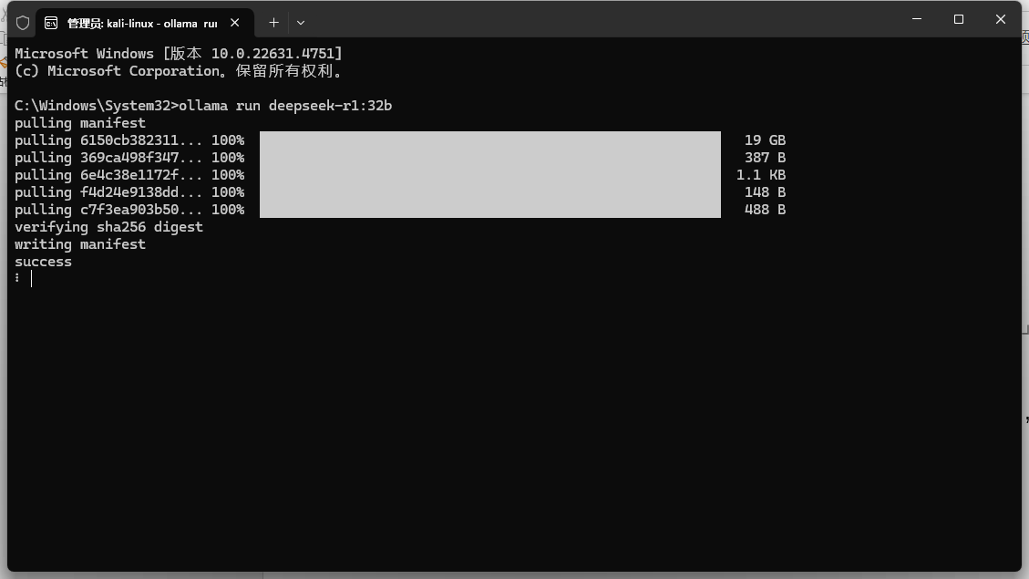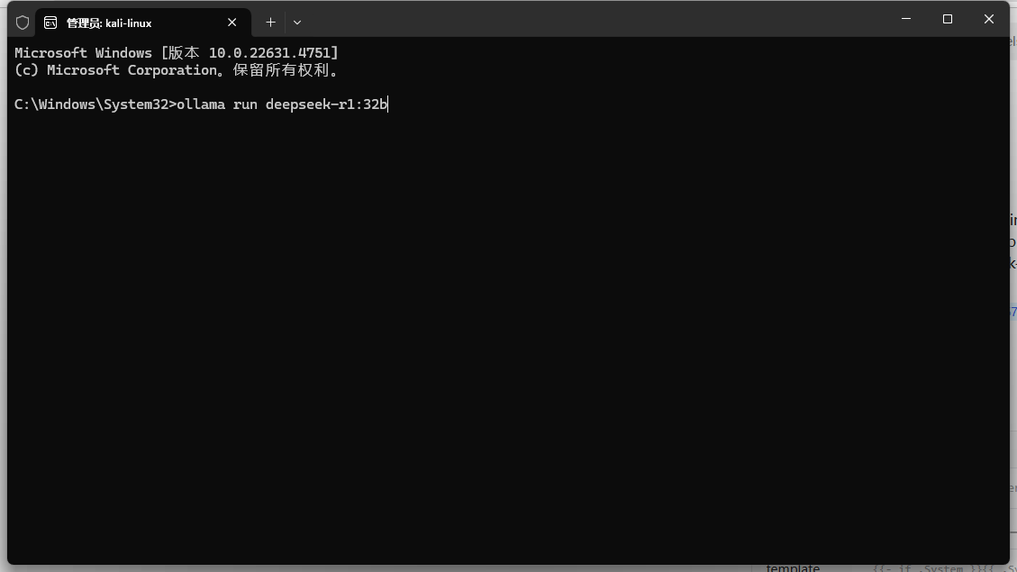 這邊使用的是DeepSeek-R1-32B模型,運(yùn)行命令是ollama run deepseek-r1:32b。