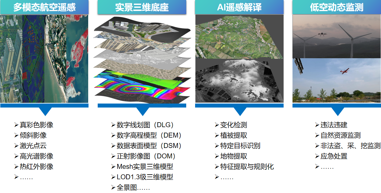 飛燕遙感使用有人機搭載自主研發(fā)的AIMS多模態(tài)航攝儀和自主研發(fā)的“遠瞰”低空無人值守系統(tǒng)進行協(xié)同進行三維地表動態(tài)多模態(tài)數(shù)據采集,能夠實現(xiàn)廣域覆蓋與精細掃描的結合,既滿足大范圍監(jiān)測的需求,又能提供局部的高精度數(shù)據,全面提升地表動態(tài)監(jiān)測的能力。采用多模態(tài)同步采集高相關性數(shù)據為地表動態(tài)監(jiān)測提供更全面易用的數(shù)據支持。針對具體場景進行協(xié)同采集,有效提升獲取效率和數(shù)據處理效果。